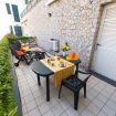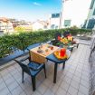 Lo spaziosissimo terrazzo attrezzato da 18 mq nel nuovo appartamento ti permette di concederti il più completo relax, consumare spuntini, aperitivi e i pasti della giornata in piena libertà, e in generale di vivere appieno all'aria aperta, lasciando che l'occhio sia libero di spaziare a 180° sul panorama circostante. Il lungomare, ricco di negozietti e ristoranti tipici, e il centro storico sono a 5 minuti a piedi.
